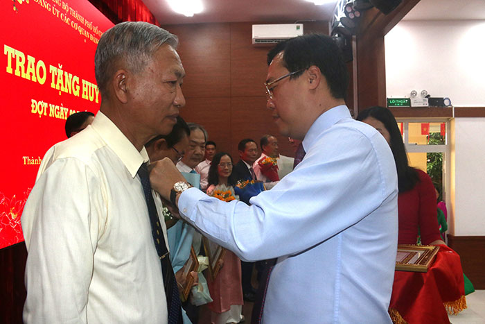 Phát biểu tại buổi lễ, Nguyễn Khoa Hải – Phó Bí thư Đảng  ủy các cơ quan Đảng TP.HCM – cho biết, trao huy hiệu Đảng đợt này thể hiện sự ghi nhận, trân trọng của Đảng đối với những cống hiến bền bỉ, to lớn của các đồng chí đảng viên trong suốt chặng đường dài phấn đấu, rèn luyện và hy sinh vì sự nghiệp cách mạng vẻ vang của Đảng và dân tộc.