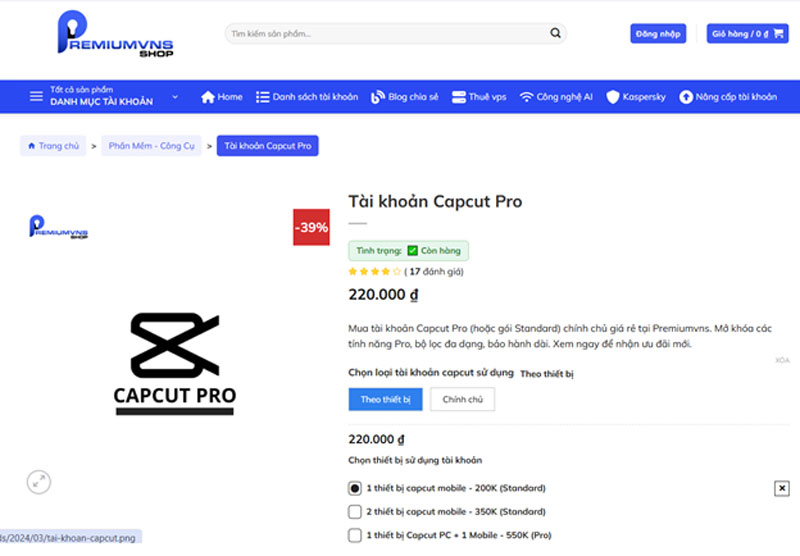 Thay vì phải chi trả gần 4 triệu đồng mỗi năm, bạn hoàn toàn có thể sở hữu CapCut Pro bản quyền chỉ với vài trăm nghìn đồng, thông qua Premiumvns Shop – một địa chỉ phân phối uy tín được nhiều người dùng tin tưởng.