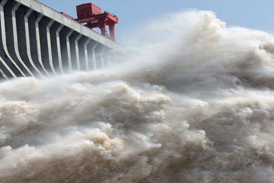 Đập Tam Hiệp của Trung Quốc trên sông Dương Tử xả lũ để hạ thấp mực nước ở hồ chứa sau mưa lớn và lũ lụt.