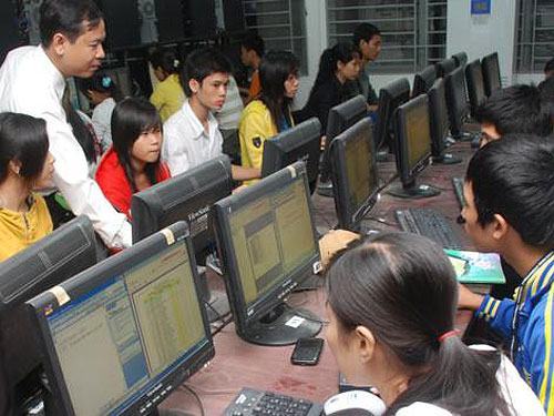 Phần lớn quỹ thời gian hiện nay của giảng viên dành cho giảng dạy. Trong ảnh: Một buổi học công nghệ thông tin tại ĐH Quốc tế Hồng Bàng (ảnh chỉ có tính minh họa). Ảnh: TẤN THẠNH