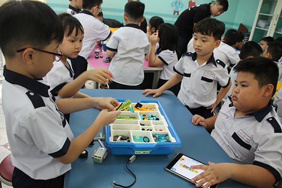 Ngoài các tiết học về văn hóa, ngay trong trường tiểu học, học sinh còn được làm quen với hoạt động lập trình, thiết kế và chế tạo robot. Từ những tiết học này, nhiều sản phẩm độc đáo đã ra đời như robot thu gom rác, robot xe hạn chế tai nạn giao thông…, qua đó sớm hình thành cho học sinh tư duy sáng tạo, giải quyết các vấn đề thực tiễn.