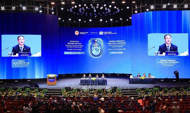 Thứ trưởng Bộ Công an Việt Nam, Thượng tướng Phạm Thế Tùng cho biết, sáng 25/10, với trên 1.000 đại biểu, từ hơn 110 đoàn quốc gia và các tổ chức quốc tế tham dự, Hội nghị đã chứng kiến khoảnh khắc lịch sử khi đại diện 69 quốc gia đặt bút ký Công ước Hà Nội với nghi thức trọng thể nhất; thể hiện nguyện vọng, quyết tâm và nhu cầu tăng cường hợp tác quốc tế và mong muốn thúc đẩy khuôn khổ pháp lý toàn cầu để phòng, chống tội phạm mạng.
