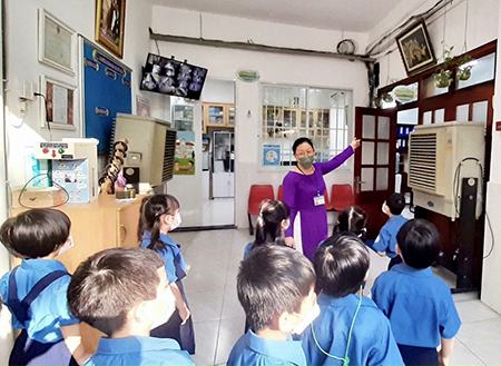 Tương tự, học sinh lớp 1 và lớp 2 Trường Tiểu học Nguyễn Huệ (Q.1) cũng chuẩn bị bước vào kỳ kiểm tra học kỳ I. Cô Trần Nguyễn Phương Linh (giáo viên chủ nhiệm lớp 1/1) thông tin, kiến thức trong đề kiểm tra môn tiếng Việt và toán giảm các yêu cầu cần đạt với những nội dung thực tế gần gũi với học sinh. Ngoài ra, còn giảm số câu kiểm tra, chuyển đổi các câu hỏi đơn giản. Các môn còn lại sẽ không làm bài kiểm tra định kỳ mà được đánh giá trong suốt quá trình học đến thời điểm cuối học kỳ I. Việc đánh giá sẽ được giáo viên ghi nhận qua thái độ học tập, khả năng tương tác và việc học sinh hoàn thành nhiệm vụ. Chia sẻ thêm, cô Linh cho hay, trong 2 tuần đầu đến trường, học sinh đã được tiếp cận làm quen với các dạng đề kiểm tra. Dù hào hứng khi được học trực tiếp song do thời gian học trực tuyến kéo dài, những em ít có sự quan tâm của ba mẹ thì năng lực tiếp thu còn chậm. Do đó, phương pháp dạy học thời điểm này của giáo viên buộc phải thay đổi, vừa dạy vừa phòng dịch, vừa kích thích học sinh đến trường. Với những học sinh tiếp thu chậm sẽ hay được gọi để tương tác, gia tăng thêm kỹ năng học tập. “Việc dạy học được thiết kế thông qua các trò chơi, sử dụng nhiều tranh ảnh, thực hành là chính để tạo sự tương tác của học sinh với thầy cô. Đặc biệt, để học sinh ham thích việc học, giáo viên không ngừng khen ngợi động viên các em mỗi ngày, mỗi tuần có thư khen thưởng. Khi các em đã quen việc học trực tiếp thì cũng tự tin làm bài kiểm tra”, cô Linh cho biết.