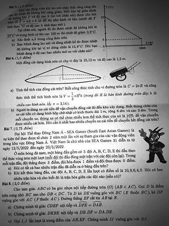Cạnh đó, Đức Huy bày tỏ bạn khá ấn tượng và thích thú khi đề thi toán khá bắt “trend”, đưa SEA Games 31 vào đề, làm cho đề thi vừa mang tính thời sự, vừa mang tính toán học. “Đề thi toán nhưng mang hơi thở cuộc sống, khiến chúng em làm bài cũng bớt khô khan hơn…”.