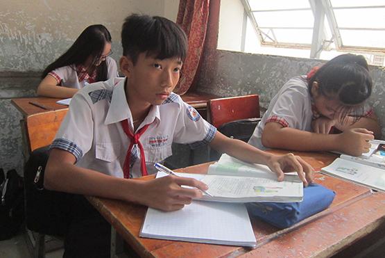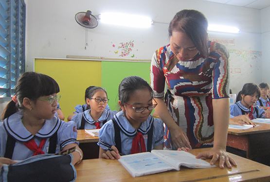 | Ngô Hoàng Yến Nhi là một trong những HS Trường Tiểu học Thanh Đa, Q.Bình Thạnh được nhận quà Tết. (trong hình: Yến Nhi trong một tiết học). Ảnh: N.Trinh |