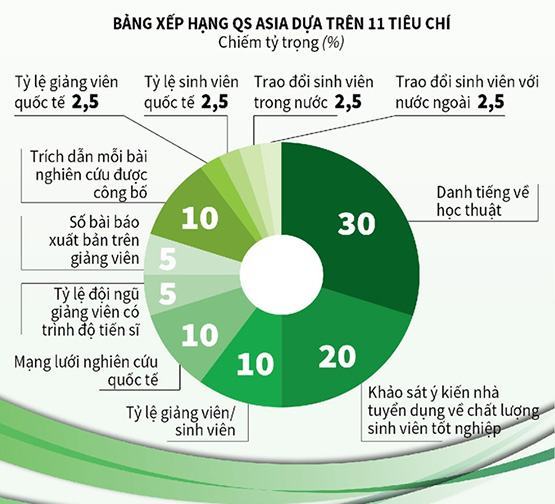Tỷ trọng đánh giá 11 tiêu chí theo QS University Ranking 2020