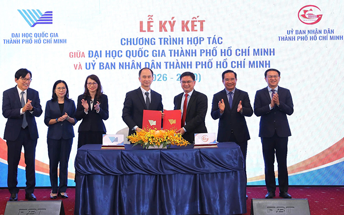Dịp này, ĐH Quốc gia TP.HCM ký kết với UBND TP.HCM chương trình hợp tác giai đoạn 2026-2030 góp phần thực hiện các mục tiêu phát triển kinh tế – xã hội bền vững của thành phố.