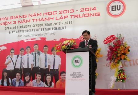 Phát biểu tại buổi lễ, Phó Chủ tịch UBND tỉnh Huỳnh Văn Nhị đã biểu dương và chúc mừng những thành tích mà đội ngũ cán bộ, giảng viên, sinh viên của EIU đã đạt được trong thời gian qua; đồng thời cũng ghi nhận những đóng góp tích cực của Tổng cty Becamex IDC đối với sự nghiệp xã hội hóa giáo dục của tỉnh Bình Dương nói riêng và của cả nước nói chung.