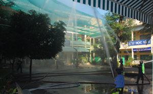 Lực lượng cảnh sát PCCC phối hợp với nhân viên nhà trường dập tắt một đám cháy giả định |