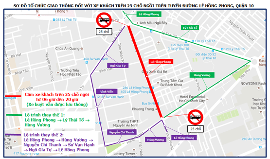 Lộ trình 2: Lê Hồng Phong -> Hùng Vương -> Nguyễn Chí Thanh -> Sư Vạn Hạnh -> Ngô Gia Tự -> Lê Hồng Phong.