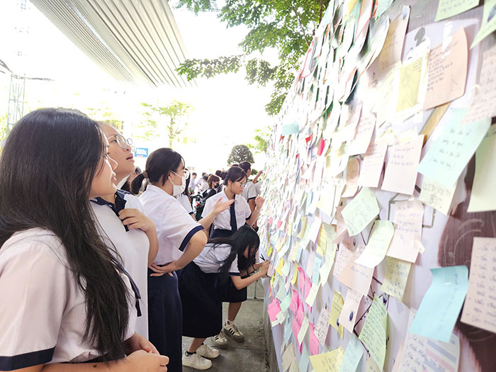 Quỳnh cho biết, đây là lần đầu tiên “Cây ước nguyện” mọc lên giữa sân trường, đã mang đến một không gian rất mới cho môi trường học đường. Với riêng học sinh lớp 12, không gian đó càng thêm nhiều ý nghĩa khi là nơi để mỗi học sinh cuối cấp được trải lòng về ước mơ của bản thân một cách tự tin, thoải mái vì những lời ước nguyện có thể ẩn danh hoặc công khai.