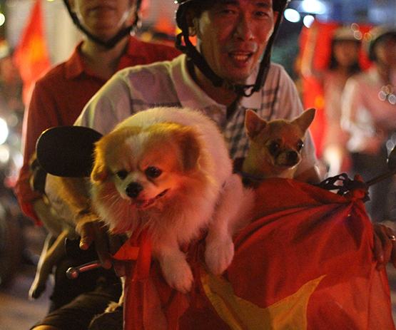 | CĐV đưa cún cưng “đi bão”. Ảnh: M.Tâm |