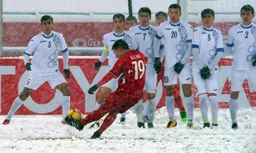 Thi đấu dưới thời tiết lạnh giá khi tuyết rơi dày, kín cả mặt sân, quả rất bất lợi với các cầu thủ U-23 Việt Nam. Tuy nhiên, trong suốt thời gian thi đấu chính thức và 2 hiệp phụ, các cầu thủ đã thi đấu vô cùng ngoan cường, kỷ luật vì màu cờ sắc áo. Bị dẫn trước ở phút thứ 8 với bàn thắng của cầu thủ RustamjonAshurmatov, các cầu thủ của chúng ta vẫn tập trung thi đấu cao độ và niềm vui vỡ òa khi Quang Hải, cầu thủ được xem là thần tài của U-23 Việt Nam tại giải lần này đã ghi bàn gỡ hòa 1-1 sau cú sút phạt vô cùng đẹp mắt ở phút 41. Bước sang hiệp 2, tuyết vẫn tiếp tục rơi, trận đấu vẫn diễn ra trong thế trận giằng co giữa hai bên. Khi 2 hiệp thi đấu chính thức khép lại với tỷ số hòa 1-1, thêm một lần nữa U-23 Việt Nam bước vào hiệp phụ như ở trận tứ kết và bán kết. Ở hiệp phụ, chúng ta đã chủ động phòng ngự, chơi rất tỉnh táo trước đối phương và tưởng chừng như trận đấu phải bước vào loạt đá luân lưu 11m thì phút 119 của hiệp phụ thứ 2, cầu thủ vào thay người AndreySidorov đã ghi bàn thắng nâng tỷ số lên 2-1, qua đó mang chức vô địch về cho U-23 Uzbekistan.