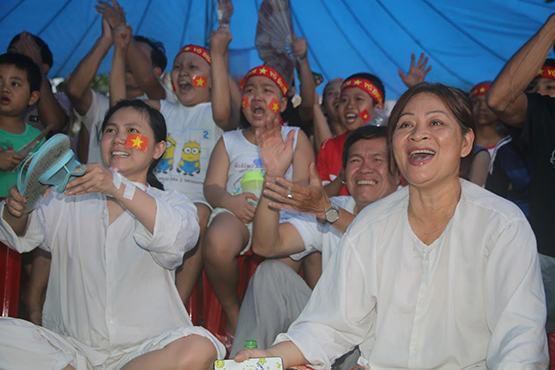 | Các bệnh nhân tại BV Ung bướu xem trận CK. Ảnh: Thy Dương |