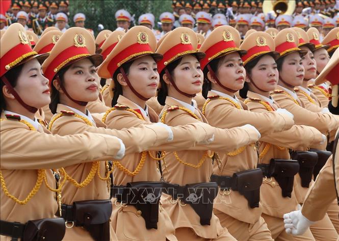 Dẫn đầu các khối Công an nhân dân Việt Nam là xe chỉ huy do đồng chí Thiếu tướng Lê Văn Sao, Phó Tư lệnh Cảnh sát cơ động, Bộ Công an; đại diện cho lực lượng Công an nhân dân anh hùng tiến vào Lễ đài.