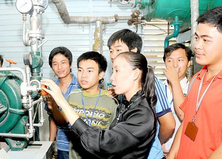 Cô Nguyễn Thị Minh Trinh – Trường ĐH Bách khoa TPHCM đang hướng dẫn về hệ thống nhiệt điện. Ảnh: MAI HẢI
