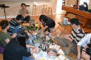 SV ở Mỹ cũng gói bánh chưng mừng ngày Tết cổ truyền của dân tộc (Trần Hoàng Phong, SV Trường ĐH bang Florida, Hoa Kỳ cung cấp ảnh)
