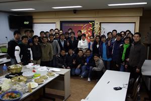 SV Việt ở Trường ĐH Ulsan (Hàn Quốc) chụp hình lưu niệm trong bữa tiệc tất niên (Phạm Văn Huy, SV Khoa Cơ khí, ĐH Ulsan cung cấp ảnh) |