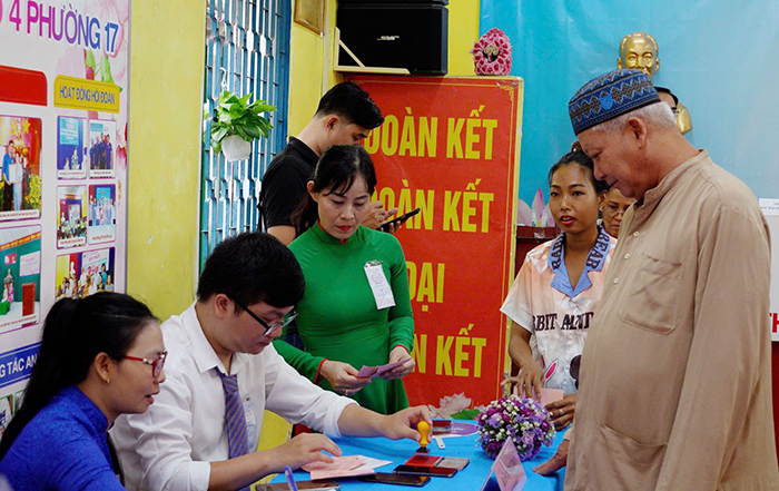 Ghi nhận của phóng viên báo Tin tức và Dân tộc, tại các khu vực có đông đồng bào Chăm và Khmer sinh sống ở Thành phố Hồ Chí Minh như phường Tân Định, phường Xuân Hòa… nhiều cử tri trong trang phục truyền thống đã đến các điểm bỏ phiếu từ sớm để thực hiện quyền và nghĩa vụ công dân của mình.