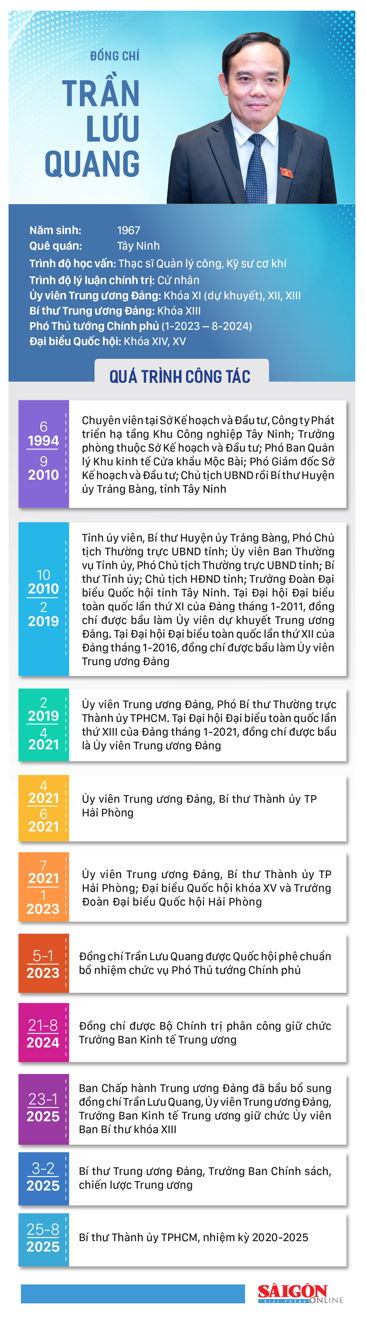 Đồng chí Trần Lưu Quang, Bí thư Trung ương Đảng, Trưởng Ban Chính sách, chiến lược Trung ương, được Bộ Chính trị chỉ định tham gia Ban Chấp hành Đảng bộ, Ban Thường vụ Thành ủy TPHCM và giữ chức Bí thư Thành ủy TPHCM, nhiệm kỳ 2020-2025.