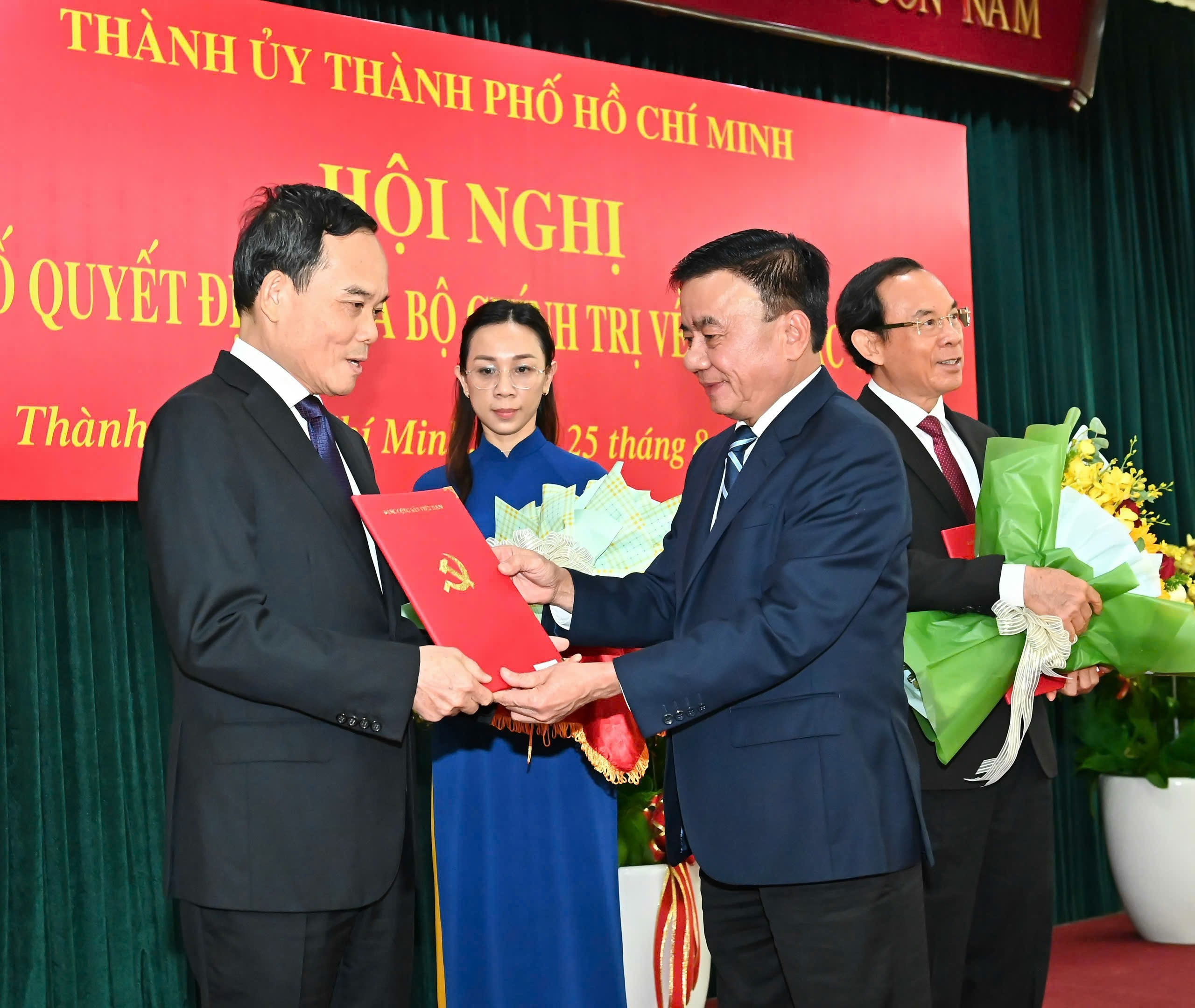 Sáng 25-8, tại TPHCM, Bộ Chính trị tổ chức Hội nghị công bố và trao Quyết định của Bộ Chính trị về công tác cán bộ.
