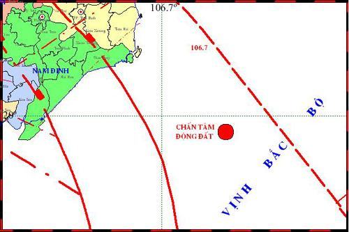 Trung tâm báo tin động đất và cảnh báo sóng thần cho biết, lúc 15 giờ 15 phút 9 giây chiều nay 3.10, ở khu vực ngoài khơi vịnh Bắc bộ xảy ra một trận động đất với cường độ 3,3 độ Richter tại vị trí 19,93 độ vĩ bắc, 106,98 độ kinh đông, độ sâu chấn tiêu 10 km.
