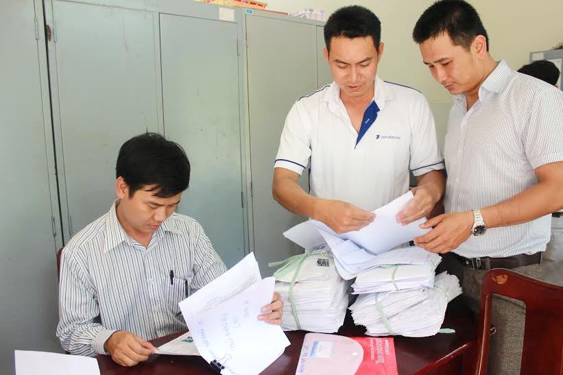 Thu hồ sơ dự thi THPT quốc gia của các đơn vị trường học tại Sở GD-ĐT sáng ngày 13-5. Ảnh: An Yên, nguồn:baodongnai.com.vn