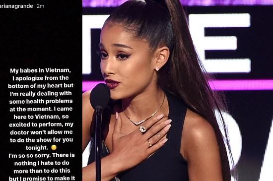Như báo chí đã thông tin, ngày 23/8, chỉ trước show diễn 5 tiếng đồng hồ, Ariana Grande đã viết một dòng tin nhắn tuyên bố hủy show vì lý do sức khỏe trên chế độ story của mạng xã hội: "Các bạn yêu quý ở Việt Nam, tôi xin lỗi từ đáy lòng nhưng tôi có một số vấn đề sức khỏe ở thời điểm hiện tại. Tôi đến Việt Nam và rất hào hứng chờ đợi đêm biểu diễn. Nhưng bác sĩ không cho phép tôi diễn trong đêm nay. Tôi vô cùng xin lỗi. Tôi căm ghét chuyện này hơn mọi thứ trên đời. Và tôi xin hứa sẽ bù đắp cho các bạn trong tương lai. Tôi yêu các bạn và cảm ơn các bạn vì đã thấu hiểu".