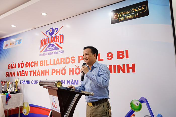 Phát biểu tại giải đấu, ông Lương Khắc Tâm – nhà sáng lập Tập đoàn Billiards Phúc Thịnh kiêm Phó Chủ tịch HBSF cho biết: “Chúng tôi rất vui mừng và vinh dự trở thành nhà tài trợ chính cho giải Billiards Pool sinh viên năm 2025. Đây là lần đầu tiên, một giải đấu pool sinh viên được HBSF và Phúc Thịnh tổ chức, mở ra một cột mốc đáng nhớ cho phong trào Billiards nói chung và nội dung pool nói riêng”.
