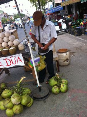 Vào trong một quán nước trên đường Đinh Tiên Hoàng, Q.1, TP.HCM gọi một trái dừa uống. Lật nắp cắm ống hút uống nước dừa có mùi rất kì lạ, vừa hôi hôi lại nhạt nhẽo hoàn toàn khác với vị dừa xiêm ngọt lịm vốn có của nó. Nhưng bên ngoài trái đưa thì vẫn tươi mới không có dấu hiệu bị hư.