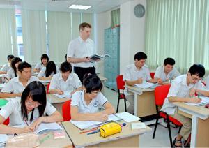Tiết học do GV bản ngữ giảng dạy tại TP.HCM. Ảnh: H.T |