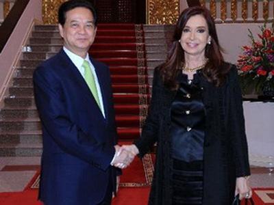 Chúc mừng những thành tựu mọi mặt mà Argentina đạt được trong những năm qua, Thủ tướng Nguyễn Tấn Dũng bày tỏ cảm ơn sự ủng hộ và giúp đỡ hiệu quả của Argentina đối với Việt Nam trong những năm tháng đấu tranh giải phóng dân tộc trước đây cũng như trong xây dựng và phát triển kinh tế-xã hội của đất nước ngày nay.