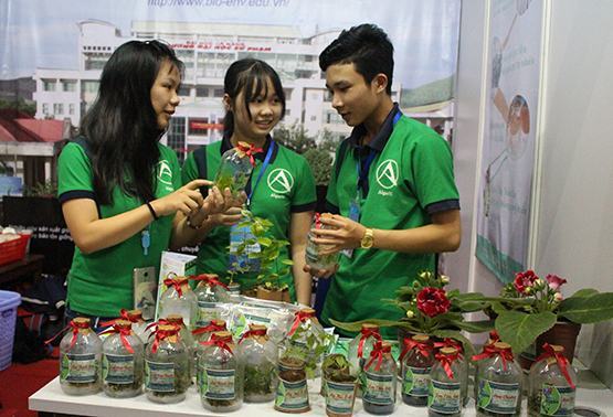 | Gian hàng giới thiệu các giống cây của Khoa Sinh – Môi trường, ĐH Sư phạm Đà Nẵng tại TechDemo. Ảnh: P.L |