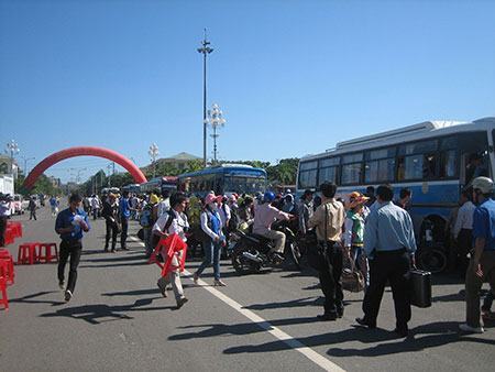 Hàng chục xe ôtô đưa miễn phí thí sinh Quảng Ngãi đi thi ngày 2/7/2011.