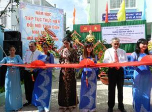 Lãnh đạo Sở GD-ĐT TP và Q.12 cắt băng khánh thành trường
