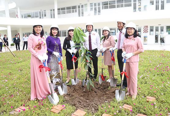 Đại biểu trồng cây lưu niệm tại sân trường