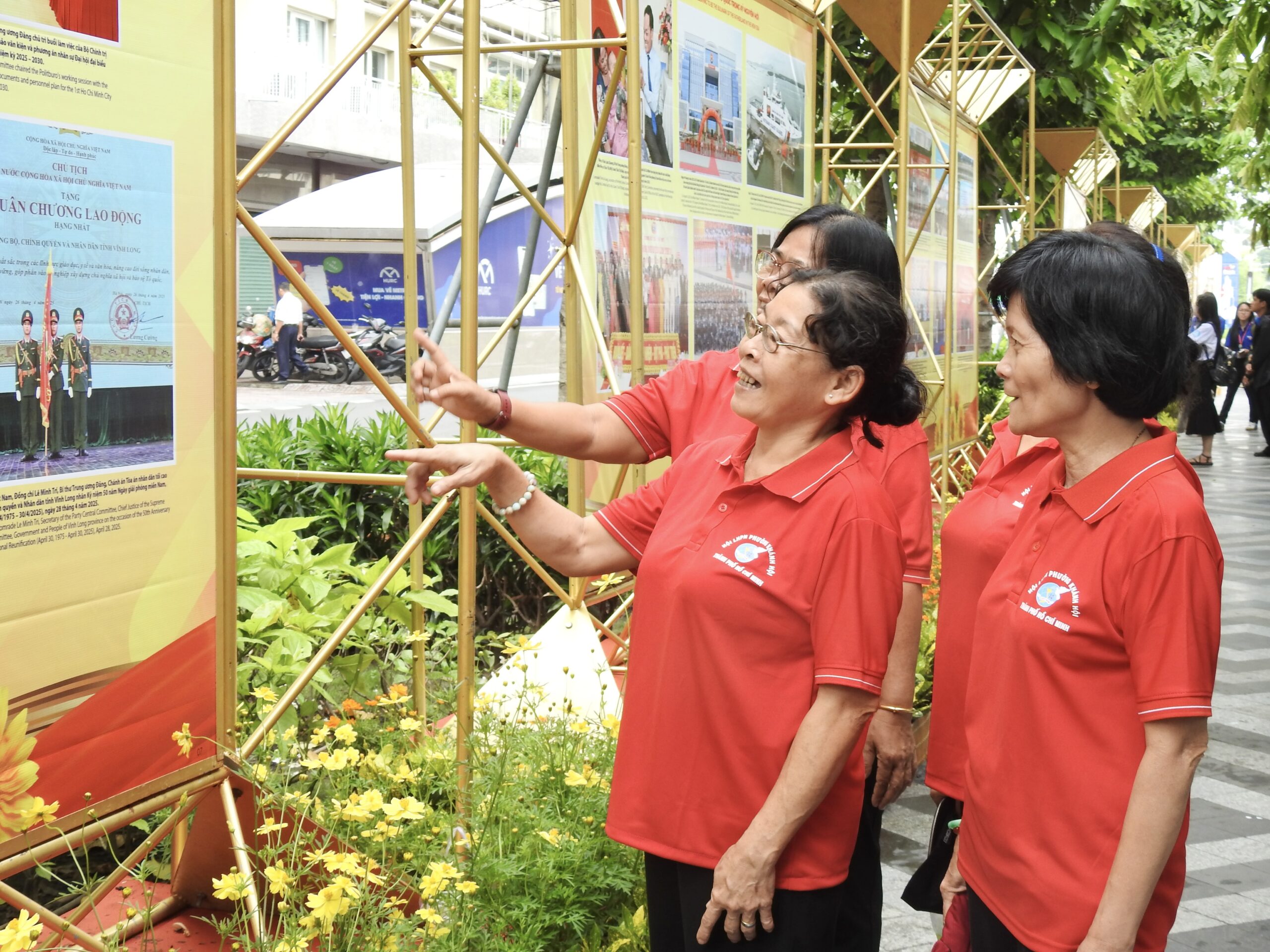 Ở khu vực đối diện Công viên Chi Lăng, triển lãm “TP.HCM xây dựng chính quyền tinh gọn, hiệu năng, hiệu lực, hiệu quả” trưng bày 50 ảnh phản ánh quyết tâm của Đảng bộ, chính quyền và nhân dân thành phố trong xây dựng bộ máy hành chính hiện đại, ứng dụng công nghệ số, phục vụ người dân tốt hơn.