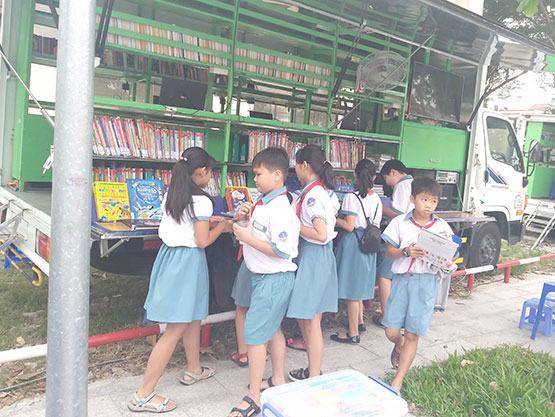 Hc sinh la chn sách đ đ xe thư vin lưu đng