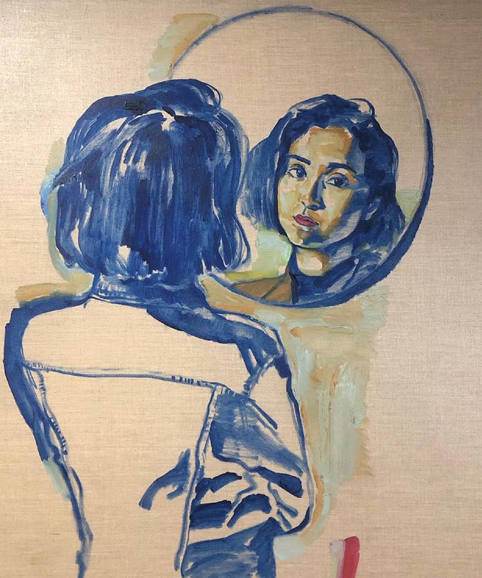 Tác phẩm "Độc thoại" của Phạm Khắc Thắng bằng chất liệu acrylic. Ảnh: Artcific