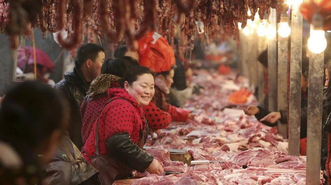 Thực phẩm được bày bán tại một khu chợ ở tỉnh An Huy – Ảnh: Reuters