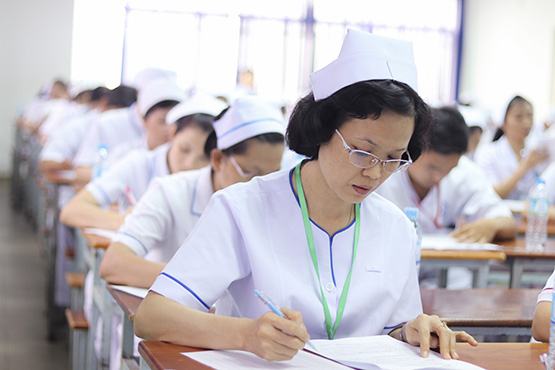 | Các điều dưỡng trưởng làm bài thi ngày 17-6 |