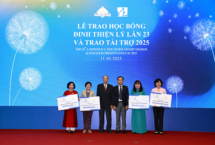 Sáng 11-10, Công ty TNHH phát triển Phú Mỹ Hưng và Quỹ Hỗ trợ Cộng đồng Đinh Thiện Lý đã tổ chức “Lễ trao học bổng Đinh Thiện Lý lần 23 và Trao tài trợ năm 2025”.