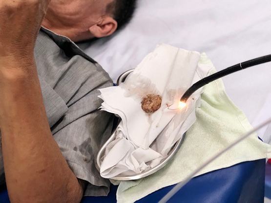 | Nội soi gắp phần thức ăn mắc kẹt trong thực quản của bệnh nhân |