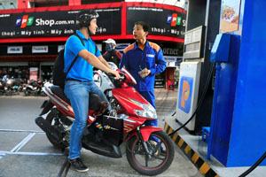 Khách hàng đổ xăng vào chiều 6-1 khi giá xăng giảm. Ảnh: I.T |