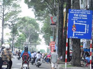 Bên cạnh việc cảnh báo trong những con hẻm thì tại nhiều tuyến đường thi công, người dân cũng được cảnh báo bằng các tấm panô hoặc những tấm biển kiên cố như: “Từ ngày 22-4, giao lộ 3 Tháng 2 – Thành Thái tiến hành thi công, hướng đi cần tránh: 3 Tháng 2 tiến thẳng đến vòng xoay Cây Gõ. Cần phải đi đường vòng qua Sư Vạn Hạnh đến Tô Hiến Thành và Lý Thường Kiệt”. Đó là một trong những nội dung của tấm biển cảnh báo giao thông đặt trên trục đường 3 Tháng 2. Anh Trần Hòa Bình (ngụ tại Lê Thánh Tôn, Q.11) cho biết: “Ban đầu không để ý đến tấm biển đó, chạy xe rất khó khăn vì đường đang thi công, ùn ứ. Phương tiện và công trường nhích nhau từng chút một. Nhưng từ ngày theo hướng bảng chỉ dẫn, tôi chạy xe thấy rất bình thường…”.