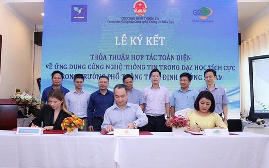 GSS (ngoài cùng bên phải) tham gia Lễ ký kết Thỏa thuận hợp tác toàn diện ứng dụng CNTT trong day học với Trung tâm Giải pháp CNTT giáo dục (Cục Công nghệ Thông tin)