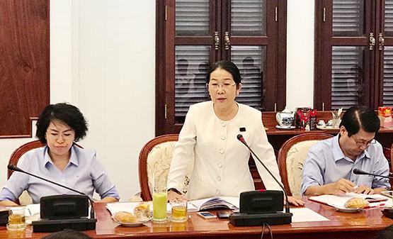 | Phó Bí thư Thành ủy Võ Thị Dung phát biểu kết luận tại hội nghị do Thường trực Thành ủy TP.HCM tổ chức ngày 19-4. Ảnh: H.L |