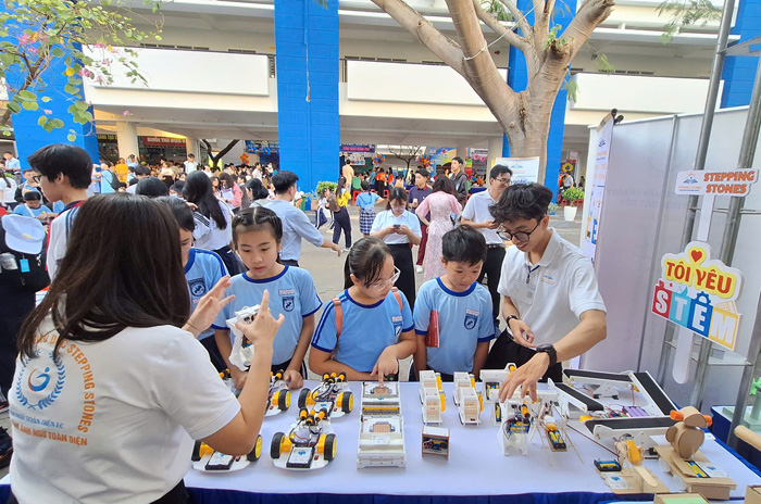 Theo bà Vũ Mai Hạ Vy – Tổng Giám đốc Công ty TNHH Đầu tư Giáo dục Stepping Stones: “Hoạt động dạy tiếng Anh và giáo dục STEM là một trong những hoạt động mang đến cho học sinh nhiều trải nghiệm thú vị trong học tập. Thông qua hoạt động này, các em học sinh được khơi gợi và nuôi dưỡng niềm đam mê nghiên cứu khoa học, ứng dụng các kiến thức đã học vào chính cuộc sống hàng ngày, hướng đến hình thành phẩm chất và năng lực cần có của một công dân thời công nghệ số. Năm học 2024-2025, hoạt động tiếng Anh và giáo dục STEM là một trong những hoạt động được các trường tiểu học, THCS đặt trọng tâm và phát triển rộng về quy mô cũng như nâng cao chất lượng dạy và học. Thông qua các ngày hội như thế này, Công ty TNHH Đầu tư Giáo dục Stepping Stones cam kết sẽ luôn đồng hành với các trường tiểu học, THCS tại các tỉnh, thành và đặc biệt là TP.HCM trên mọi hành trình”.