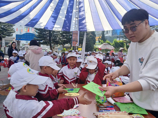 Thông qua các ngày hội tiếng Anh và trải nghiệm STEM, các em học sinh bậc tiểu học, THCS sẽ được trực tiếp tham gia vào các trò chơi có thưởng bằng việc hát và đoán từ tiếng Anh thông qua hình ảnh thân thuộc với ngày Tết cổ truyền của Việt Nam như gói bánh chưng, bao lì xì, cây hoa đào, hoa mai, chúc Tết ông bà, cha mẹ…