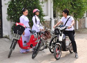 HS đi học bằng xe đạp điện là an toàn nhất. Ảnh: Lữ Đắc Long